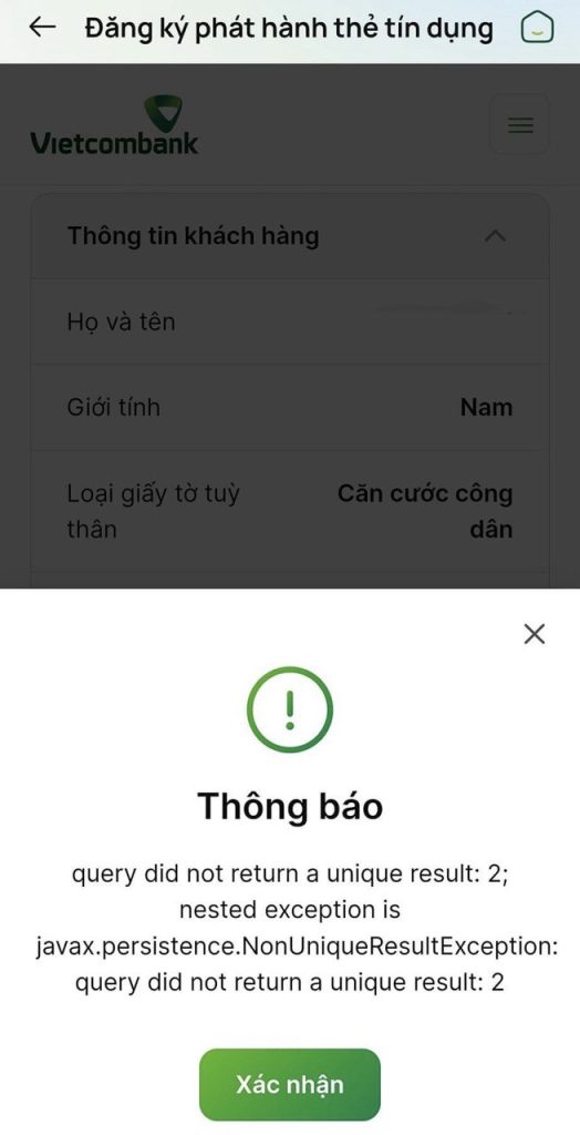 Query 1 căn cước công dân mà đang bị trả duplicate hai bản ghi rồi nè, không ai trả lỗi hệ thống thế này về cho người dùng cả, handle lại exception đi nha.